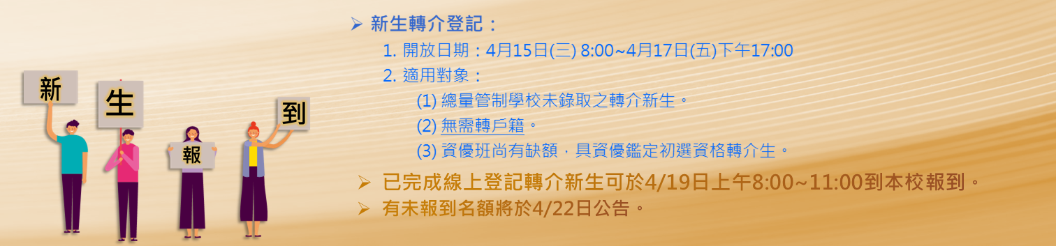 3.測驗教室安排將於6/11(四)前公告於本校官網布告欄及新生入學專區。